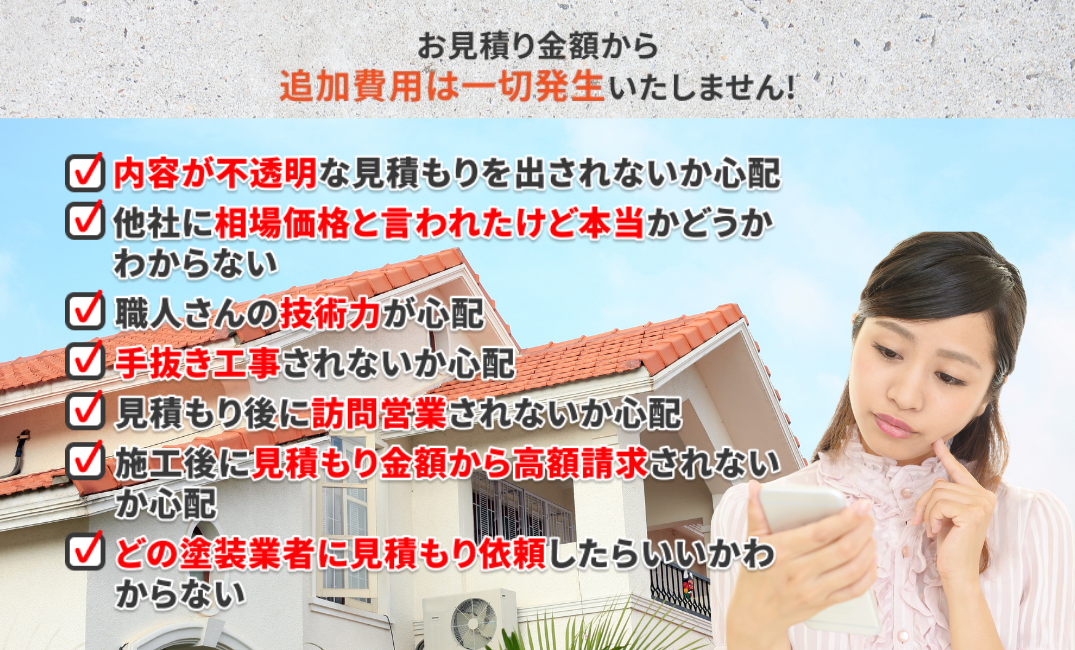 安易な価格設定・安請け合い「請負」はいたしません、お客様のご予算、使用材料、耐久性などを伺いお客様にご納得して頂く施工提案適正価格でお引き受けいたします。